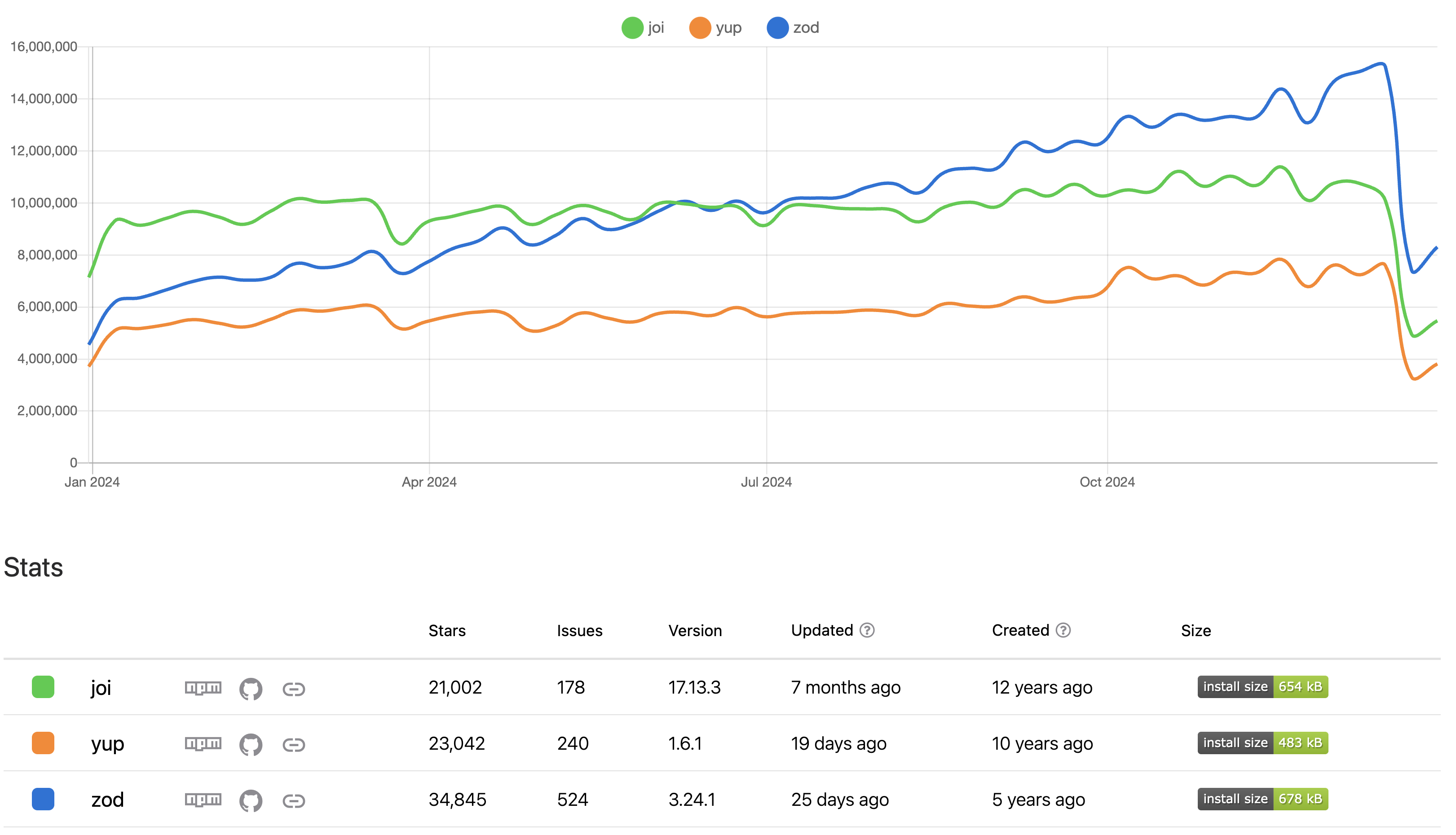 - 아직 joi나 yup만큼 오래된 생태계는 아니지만, zod는 최근 들어 매우 빠르게 성장하는 추세입니다.